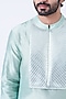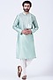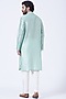 Featuring a minty blue handwoven kurta in silk chanderi base with metallic polymer detailing. Perfect attire for festive occasions, exuding traditional charm and elegance.