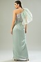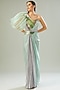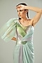 Featuring a mint green moulded draped gown in metallic polymer and chiffon base.