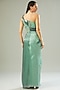 Featuring a mint moulded draped gown in metallic polymer and organza base.