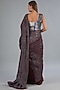 Featuring a navy blue gown saree in metallic polymer base. It is paired with a drape. Accentuate with dangler earrings and heels for a party look.