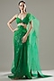 Neon Green Tulle & Striped Pre-Draped Saree Set