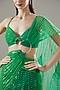 Featuring a neon green pre-draped saree in striped and tulle base. It is paired with a blouse. Accentuate the designer saree set with statement earrings and heels for engagement, sangeet, or pre-wedding ceremonies.