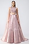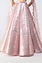 Amit Aggarwal presents a rose pink metallic fluted skirt in butterfly net base. It is paired with a metallic scale halter top and a tulle drape. Elevate with a diamond choker, statement bangles and dewy makeup for a luxe finish, Perfect for high-profile weddings, grand receptions, or destination celebrations.