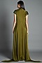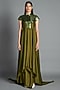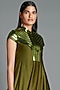 Featuring an olive green draped dress in crinkled chiffon base with handwoven metallic work at the yoke.