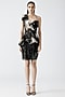 Onyx Black & Gold Metallic Patti Moulded One-Shoulder Mini Dress