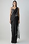 Onyx Black Satin Chiffon Draped Saree Set