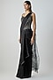 Featuring an onyx black draped saree in satin chiffon and butterfly net base with a crystalvein metallic palla. It is paired with a structured corset. Accentuate it with zircon stud earrings and block heels for a festive, sangeet or mehendi ceremonies.