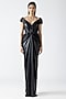 Onyx Black Velvet Chiffon Off-Shoulder Moulded Gown