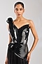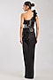 Featuring an onyx draped gown in mineral jersey base. Ethereal and enchanting, style this gown with delicate diamonds and a sleek clutch, perfect for receptions, glamorous soirees or a red-carpet moment.