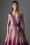 Featuring an oxblood metallic hand-woven textile gown in butterfly net base with fluted ombre details. Accentuate it with zircon dangler earrings, a clutch and metallic heels for a cocktail, sangeet or evening soirees.