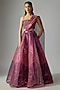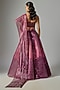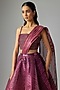 Featuring an oxblood ombre metallic fluted lehenga in tulle base. It is paired with a metallic bustier and a drape. Accentuate it with dangler earrings and heels for a cocktail, reception, sangeet or engagement ceremony.