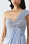 Featuring a pearl-colored gown in satin chiffon and butterfly net base. Accentuate it with zircon or swarovski jewellery, block heels and a clutch for evening soirees, cocktail parties or date nights.