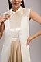 Featuring a pearl white and sand colored dress in metallic polymer and crepe chiffon base. It is paired with slip and belt. Accentuate it with statement earrings and heels for an evening look.