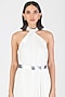 Featuring a pearl white maxi dress in satin chiffon base with a halter neckline and metallic micro pleating detail. Accentuate it with statement jewellery and heels for an evening look.