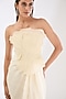 Featuring a pearl white gown in striped organza base. Accentuate it with statement earrings and heels for evening wear or cocktail party.