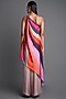 Featuring a pink sunray asymmetrical draped top in chiffon base with metal pipe detailing. This contains only one piece.