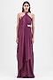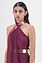 Plum Chiffon & Polyester Metallic Draped Halter Dress