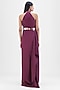 Featuring a plum draped halter dress in chiffon and polyester base with metallic micro pleats detail. Accentuate with statement jewellery and heels for a cocktail party or sangeet ceremony.