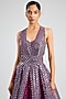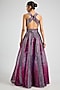 Featuring a plum gown in metallic polymer base. Accentuate it with statement jewellery and heels for a wedding, engagement or sangeet ceremonies.