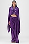Featuring a purple top in metallic polymer and chiffon base. It is paired with a skirt. Accentuate it with statement earrings and heels for cocktail parties.
