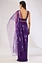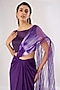 Amit Aggarwal presents a purple skirt in crepe chiffon and metallic polymer base. It is paired with a top and a drape. Style it with statement earrings, a necklace, and a clutch for a glamorous wedding look..