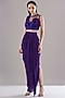 Featuring a purple bustier in satin chiffon base. It is paired with a skirt. Accentuate it with statement jewellery and heels for a cocktail look.