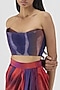 Featuring a red and blue ombre micro pleated bustier in metallic base. Accentuate it with a skirt, silver earrings, heels and a clutch for evening wear or cocktail party.