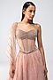 Amit Aggarwal presents a rose pink skirt in butterfly net base with a metallic wave detail. It is paired with a moulded crystalvein top and a metallic tulle drape. Elevate with a diamond choker, statement bangles and dewy makeup for a luxe finish, Perfect for high-profile weddings, grand receptions, or destination celebrations.