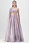 Featuring a rose pink striped fluted skirt in metallic and tulle base with print. It is paired with a beaded top. Accentuate it with statement jewellery and heels for a cocktail party or sangeet ceremony.