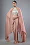Featuring a rose pink halter top in satin chiffon base with an attached cape. It is paired with a dhoti skirt. Accentuate it with stilettos, a structured clutch, and understated diamond accessories for a refined ensemble, ideal for formal evenings, cocktail gatherings or parties.