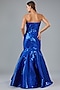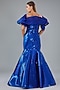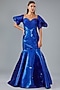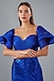 Featuring a royal blue gown in metallic polymer base. It is paired with a detachable cape. Style it with statement earrings and heels for a cocktail, wedding ceremony or festive occasions.