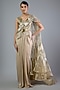 Sand-Colored Satin Chiffon Draped Skirt Saree Set