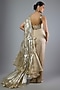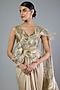 Featuring a sand-colored top in satin chiffon base. It is paired with a draped skirt and a drape palla. Accentuate it with stilettos, a structured clutch, and understated diamond accessories for a refined ensemble, ideal for sangeet, cocktail gatherings or red carpet.