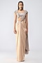 Amit Aggarwal presents a sand-colored draped saree in satin chiffon and butterfly net base with micro-pleating on the palla and waist. It is paired with a metallic scale top having glass bead detailing. Elevate with a diamond choker, statement bangles and dewy makeup for a luxe finish, Perfect for high-profile weddings, grand receptions, or destination celebrations.