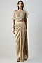 Featuring a sand-colored top in satin chiffon base. It is paired with a skirt. Accentuate it with zircon jewellery and block heels for wedding, sangeet or cocktail ceremonies.