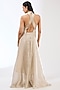 Featuring a sand-colored maxi dress in striped organza base. It is paired with an inner. Elevate your dress with refined jewelry and sleek heels for a polished look at any special occasion.