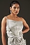 Featuring a silver gown in banana crepe base.