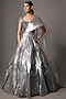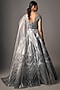 Featuring a silver lehenga in tulle and poly crepe base with embroidery. It is paired with an embroidered blouse and a drape. Accentuate it with zircon or swarovski jewellery, embellished heels and a clutch for a bridal look, Perfect wear for your sangeet or cocktail ceremony.