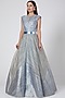 Featuring a sky blue structured gown in striped base with sequins embroidery. It is paired with a matching belt.