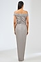 Featuring a steel-colored gown in jersey base. Accentuate statement earrings and heels for a cocktail party.