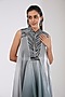 Featuring a steel grey dress in metallic polymer and crepe chiffon base. It is paired with a slip and a belt. Accentuate it with diamond earrings and heels for cocktail parties.