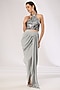 Amit Aggarwal presents a steel grey skirt in crepe chiffon and metallic polymer base. It is paired with a top. Style it with statement earrings, a necklace, and a clutch for a glamorous look for an evening or cocktail party.