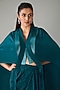 Featuring a teal cape in metallic polymer and crepe chiffon base. It is paired with a skirt. Accentuate with statement jewellery and heels for a destination wedding or sangeet ceremony.