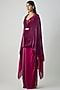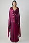Featuring a wine and fuchsia cape in satin chiffon base. It is paired with pants, an inner and a belt. Accentuate it with hoop earrings and heels for a festive gathering or evening soirees.
