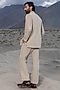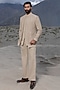 Featuring a beige front-open indowestern jacket in cupro base with monotone hand embroidery. It is paired with a kurta and pants. Style it with mojaris for a festive occasion, wedding or engagement ceremony, exuding charm and elegance.