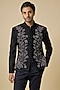 Featuring a black bundi jacket in silk base. It is paired with pants. Style it with a pair of loafers and a watch for festive occasions, weddings or sangeet ceremony.