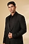 Featuring a black tuxedo in textured knit base. It is paired with pants. Style it with shoes for a cocktail party, sangeet or reception ceremony, exuding charm and elegance.