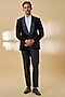 Featuring a black tuxedo in velvet base. It is paired with pants. Perfect for a reception, wedding, or engagement ceremony, exuding charm and elegance.