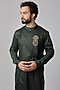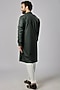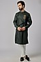 Featuring a bottle green kurta in lycra knit base with brooch motif hand embroidery. Perfect for a sangeet or festive occasion.
