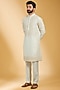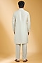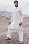 Featuring an ivory kurta in linen bamboo silk base with dori embroidery. It is paired with aligarhi pants. Style it with mojaris for a festive occasion or intimate pooja ceremony, exuding charm and elegance.